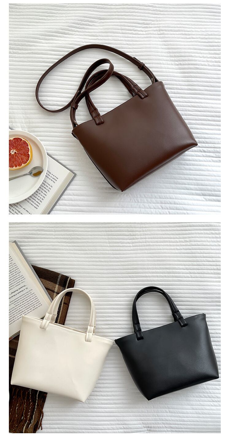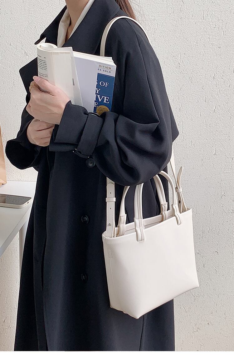 このバッグは、たくさんの荷物や必需品を収納できる大容量ですが、スリムなデザインでスマートな印象を与えます。PU素材を使用しているため、耐久性もあり、長くご使用いただけます。また、取り外し可能なストラップが付属しているので、シーンに合わせてスタイリングのバリエーションも広がります。