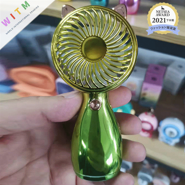 涼しい風を届ける可愛い卓上扇風機。手のひらサイズで持ち運びも簡単です。電池容量は250mAhで、長時間使用可能。USB充電機能を備えており、どこでも簡単に充電ができます。