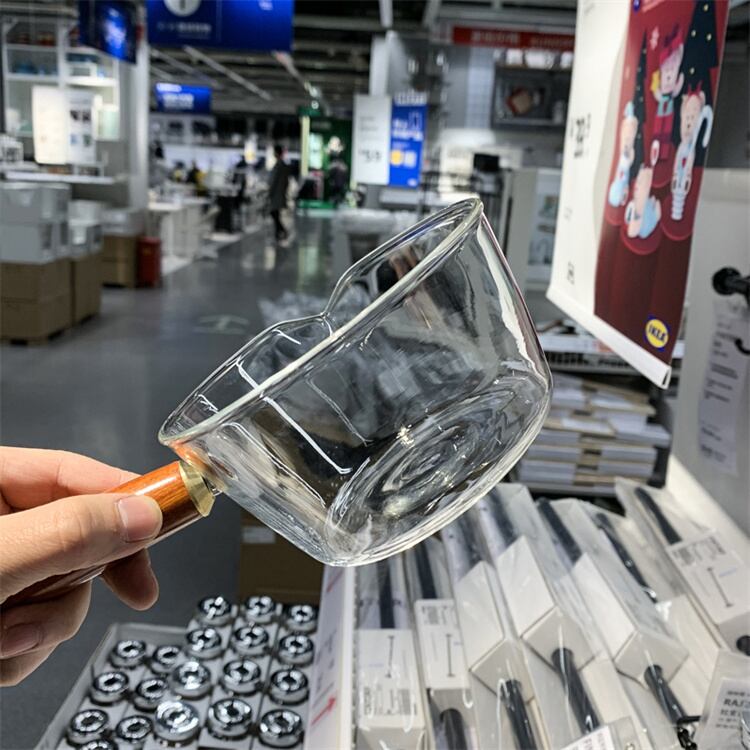 ミルクポット 高温耐性ガラス 木製ハンドル インスタントラーメンポット 直火